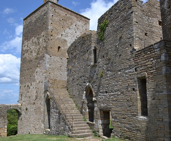 donjon et les tours romanes. De ce corps de logis gothique, ruiné,