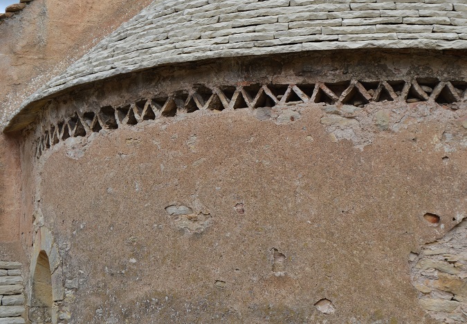 du clocher, dents de scie de l'abside, pierre du compagnon |