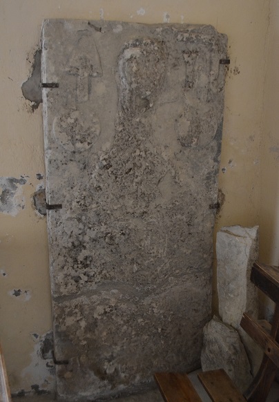 une pierre tombale médiévale avec bas-relief d’un