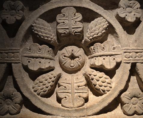 sculptés en pierre calcaire : rosaces au décor végétal,