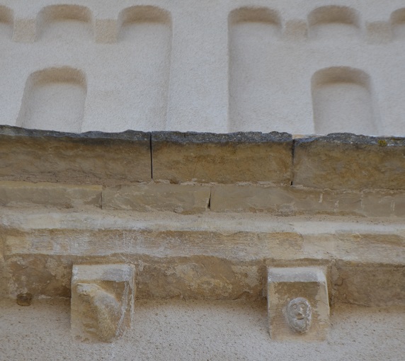 chapiteaux du portail, modillons, bénitier avec chapiteau |