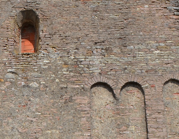 est allegée par cinq arcatures aveugles sur de larges demi-colonnes.