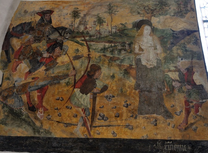 grandes arcades brisées et fenêtres hautes. Des fresques
