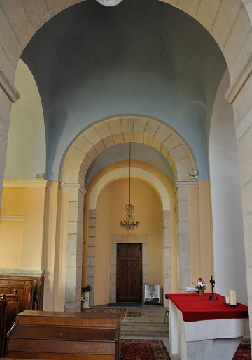 reconstruite au 19e siècle, conservant de roman son transept